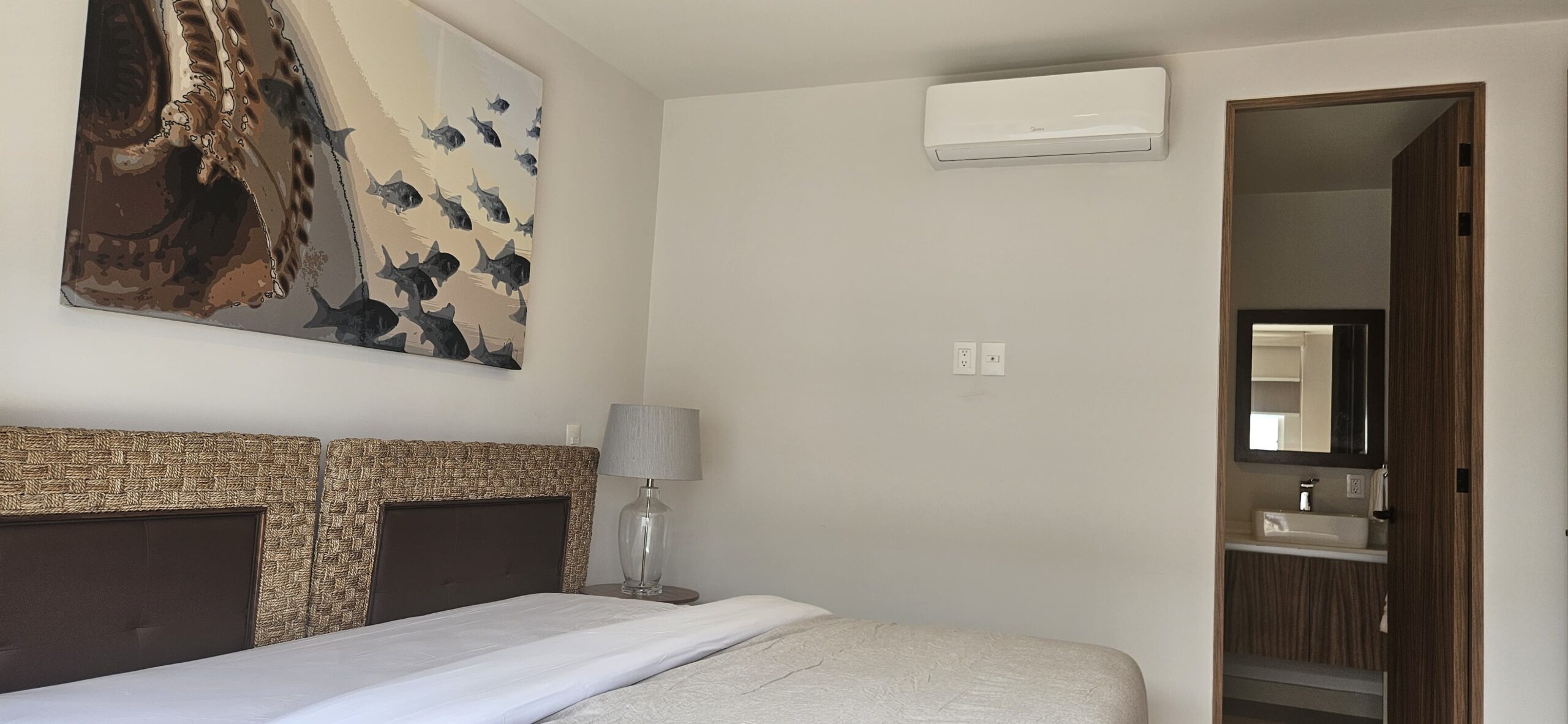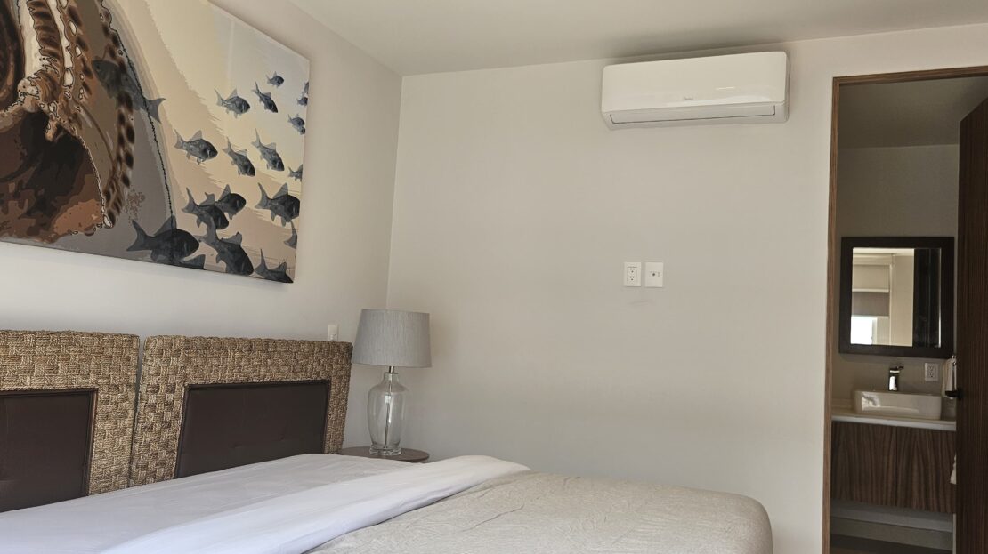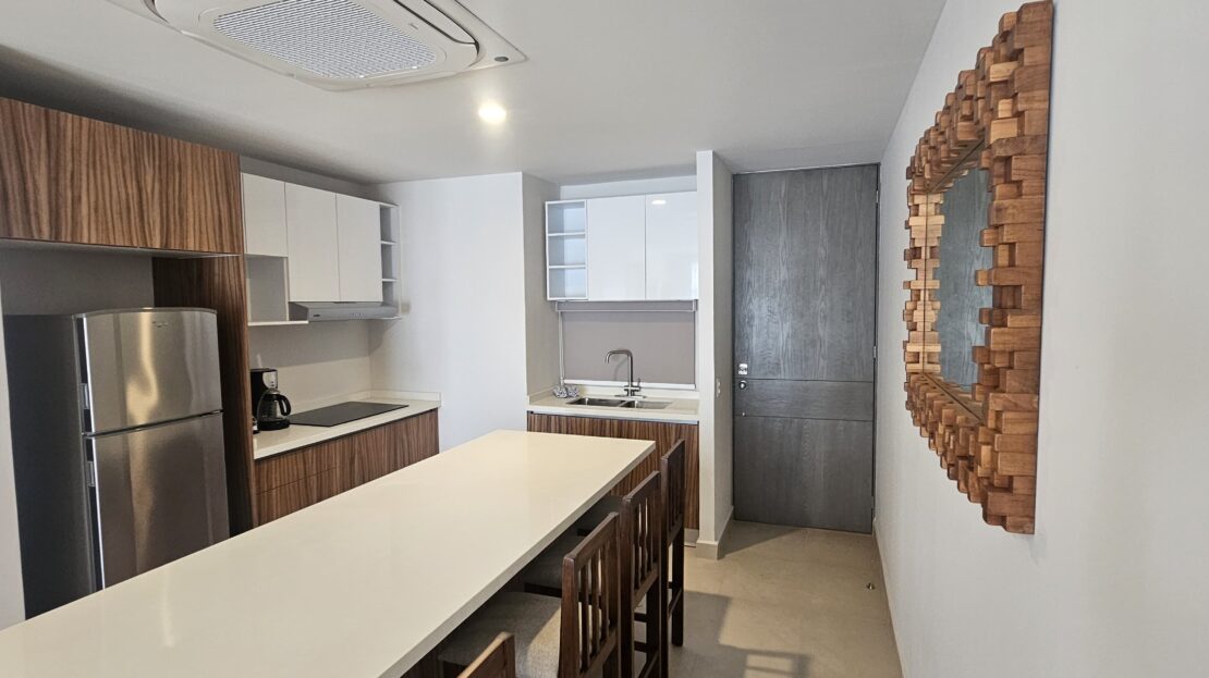 Estrena este muy bien ubicado departamento en Nuevo Vallarta, se entrega completamente amueblado y listo para generar rentas vacacionales. cuenta con dos amplias recamaras la principal con baño completo y balcón.