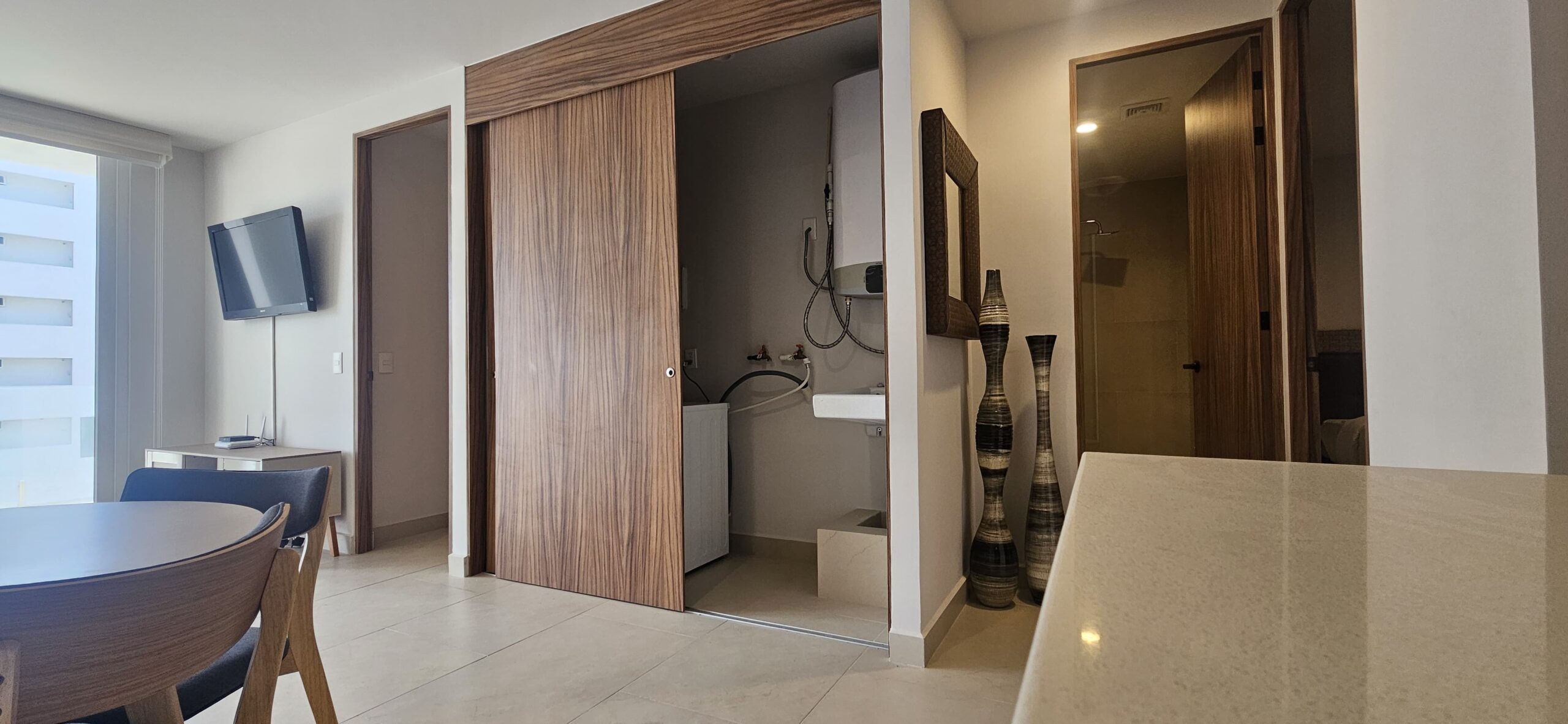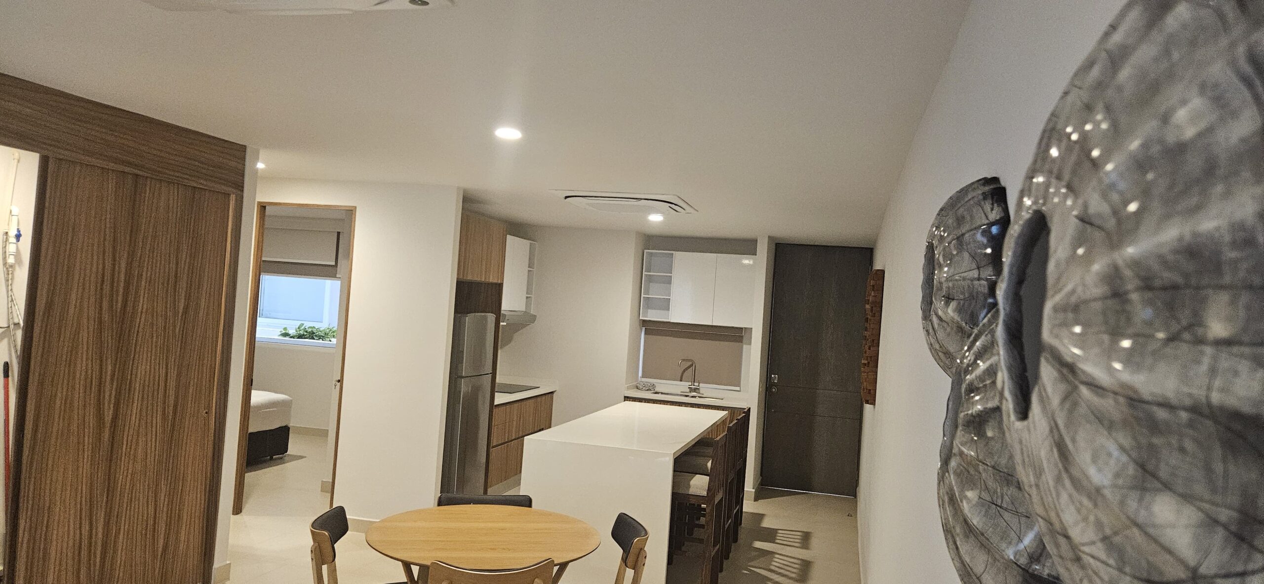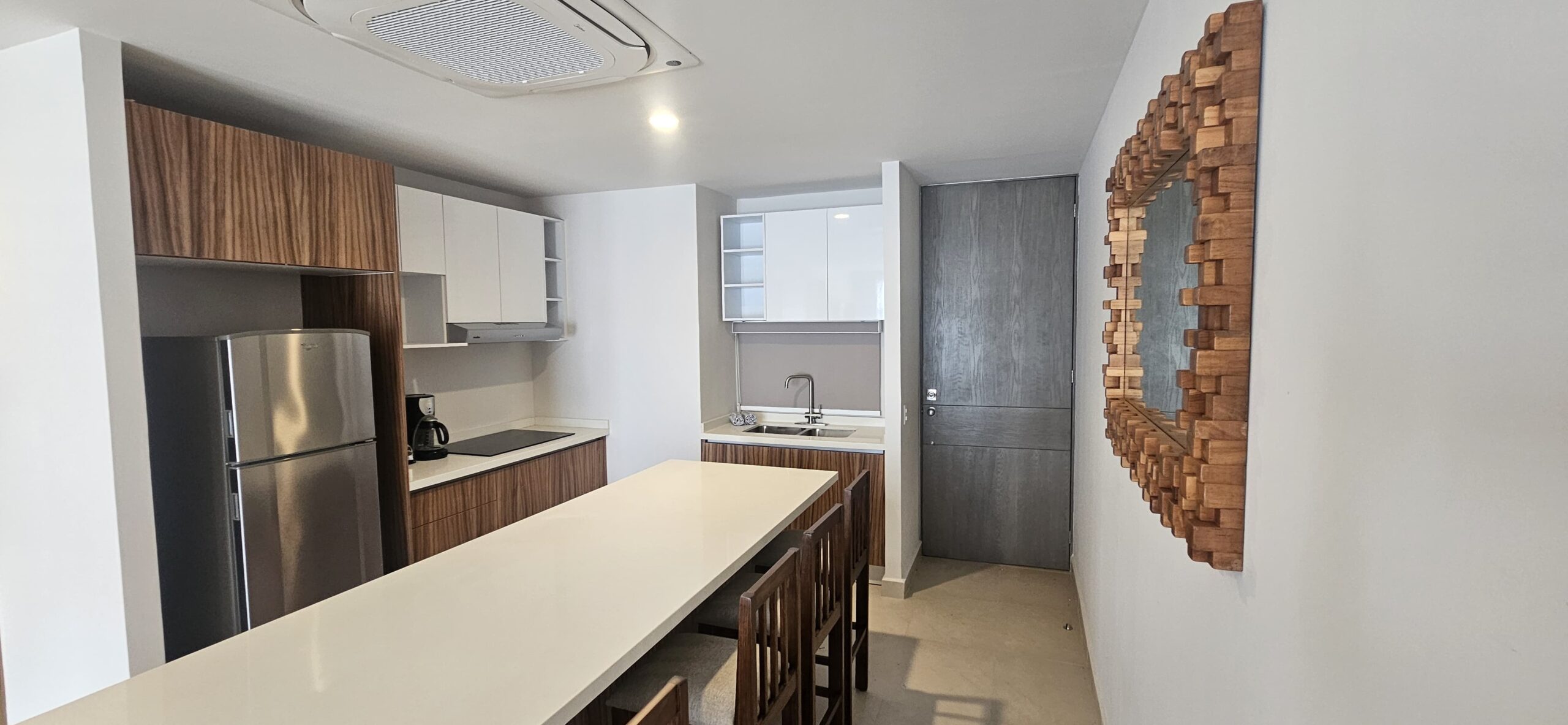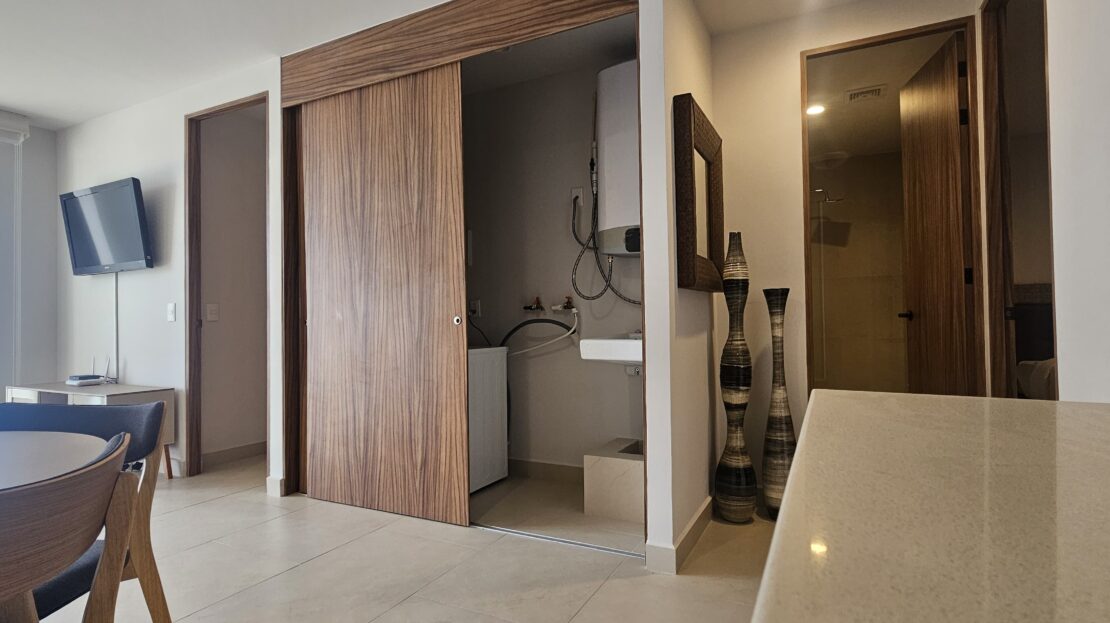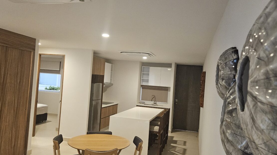 Cocina de cuarzo blanco,sala comedor y espacio de lavandería, se ubica en 3 piso y el complejo cuenta con elevador y un cajón de estacionamiento.